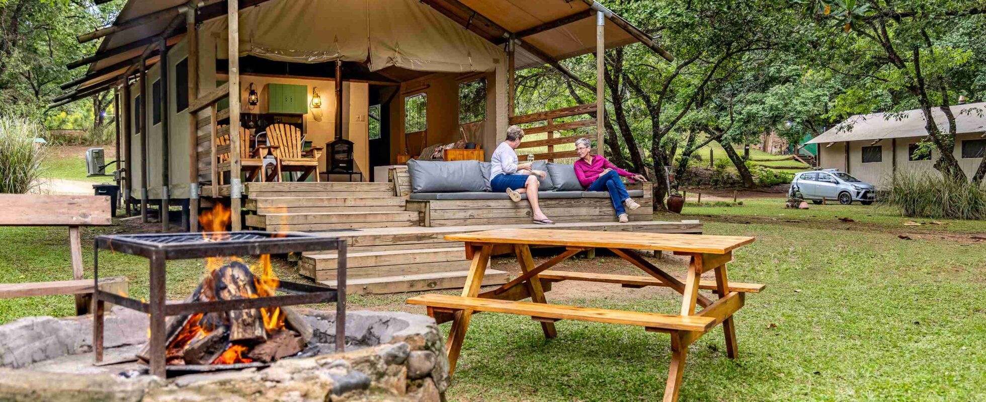 Op slechts 30 kilometer van de Phabeni-poort van het Kruger National Park combineert AfriCamps at Mackers de rust van de rivier met het comfort van boetiekglamping in het hart van de Sabie-vallei. Alle tenten zijn ensuite met douche en hebben een zithoek en volledig uitgeruste kitchenette. Je kunt heerlijk relaxen bij het zwembad, gaan vissen of wandelen langs de wilde stroomversnellingen van de Sabie River. Ontbijtmanden zijn tegen een toeslag verkrijgbaar en ’s avonds kunnen je zelf lekker barbecuen. In de kampwinkel kun je terecht voor basisinkopen (wel zo handig!), koude drankjes en ijsjes. En de kids kunnen zich uitleven met het beschilderen van stenen of deelnemen aan spelletjes in de Kids Zone. Dit alles, samen met het geluid van uilen en galago-aapjes nachts, staat garant voor een comfortabel maar ‘puur natuur’ verblijf!