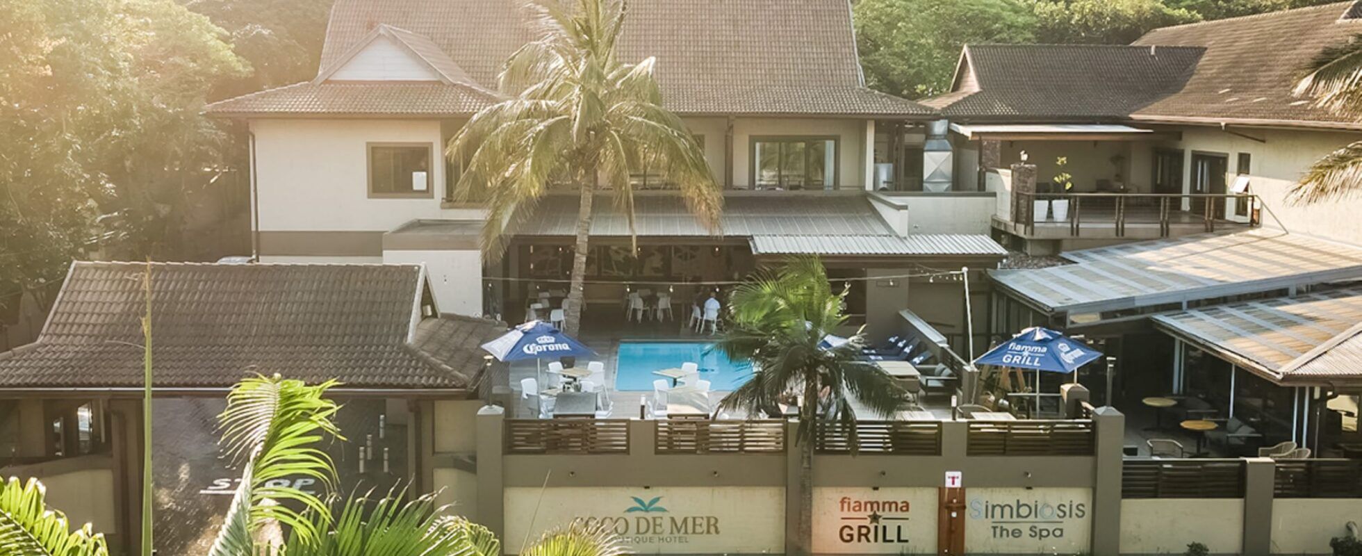 Coco De Mer Boutique Hotel in Ballito ligt midden in een natuurlijk eco-bos met de warme tropische Indische Oceaan op de achtergrond, op loopafstand van de meest exclusieve stranden. Negentien luxe suites in Afro-Balinese stijl zijn voorzien van een privébalkon met uitzicht op de oceaan of het kustbos. De kamers zijn ensuite met douche en toiletartikelen, en uitgerust met satelliet TV, gratis Wi-Fi, airconditioning, koffie- en theefaciliteiten, een kluisje en een goed gevulde minibar. De Simbiosis Spa ligt in de tuin en nodigt je uit voor verwensessies in een weelderig groene, serene omgeving. Fijnproevers zullen dol zijn op het huisrestaurant Fiamma Grill, dat inspiratie put uit de Italiaanse keuken met een lokale twist. Verkies je fine dining of de feestelijke sfeer rond de exotische poolbar? Het is er allemaal, soms zelfs aangevuld met livemuziek.