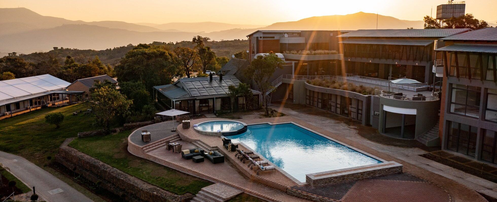 Hoyohoyo Angels View Graskop is een elegant designhotel dat zich uitstrekt over de Drakensberg-helling aan de voet van de Panoramaroute nabij “God’s Window” in Graskop, Mpumalanga. Het honderd hectaren grote landgoed pronkt met spectaculaire tuinen en biedt luxe accommodatie in verschillende vormen en maten (voor 2 tot 8 personen), altijd voorzien van ruime lounges en privéterrassen met adembenemend uitzicht. De ensuite badkamers zijn voorzien van luxe vrijstaande baden en frameloze regendouches. Andere voorzieningen zijn airconditioning, minikeukens, satelliet TV en WiFi. Er is een zwembad, een poolbar en een bibliotheeklounge, en het restaurant van het hotel voorziet in alle behoeften – er is zelfs een privé-eetkamer beschikbaar voor maximaal 12 gasten en een eigen landingsbaan (Graskop Airfield) voor degenen die per vliegtuig arriveren!