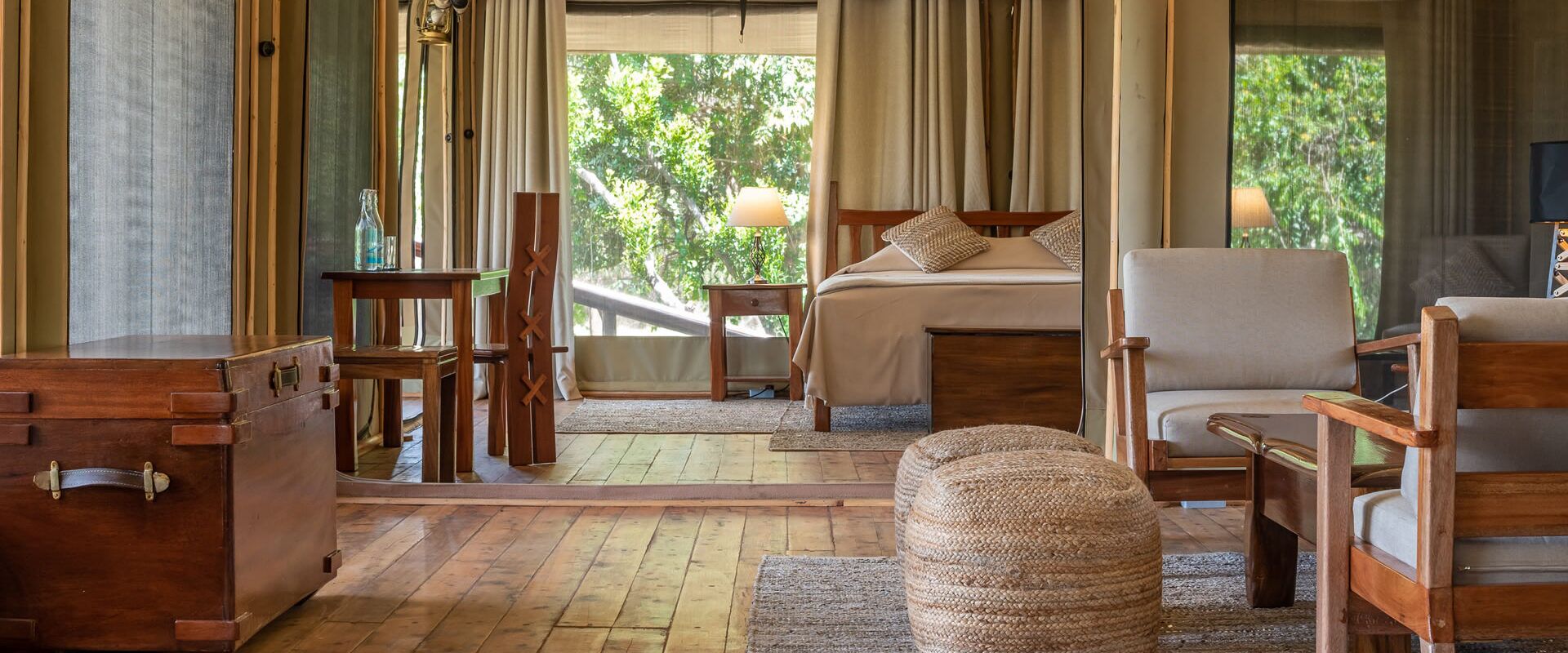 Met luxe tenten op verhoogde platforms vlakbij de Talek- én de Mararivier, is het Ilkeliani Mara Camp de perfecte plek om uit te rusten na een intensieve dag gnoes en zebra’s volgen in de Grote Trek. De twaalf ruime tenten zijn klassiek ingericht met ouderwets luxe banken en bedden, dikke tapijten en nog dikkere kussens en dat alles in verschillende houttinten en aardse kleuren. Voeg daar een 180 graden uitzicht vanuit de badkamer aan toe, waar een binnendouche uitloopt naar een buitendouche, en je weet dat je goed zit. De prachtige familietent heeft daarnaast een ruime woonkamer tussen twee slaapkamers in, waardoor gezinsleden zowel van elkaar als van hun privacy kunnen genieten.