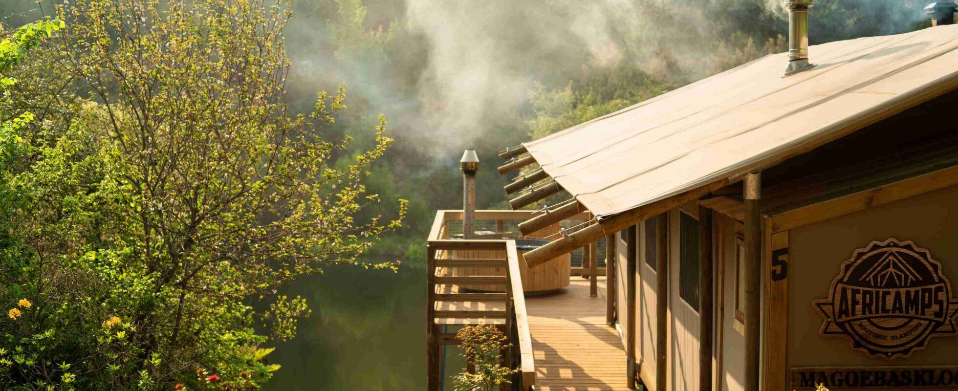 AfriCamps Magoebaskloof ligt op slechts 7 kilometer buiten het pittoreske dorpje Haenertsburg, waar glooiende graslanden, felgekleurde bloemen en Zwitserse bergarchitectuur je bijna doen vergeten dat je in Limpopo bent. De 10 volledig uitgeruste boutique glampingtenten kijken uit over de betoverende Magoebaskloof en zijn omgeven door prachtige tuinen, beekjes en dammen (die regelmatig worden bezocht door de mooiste inheemse vogels!). Ze hebben allemaal 2 slaapkamers (beide met een queensize bed en 1 extra stapelbed), een zitkamer, een eethoek, een badkamer met douche, een kitchenette, een houten privédek en je eigen houtgestookte hot tub. Er is zelfs Wi-Fi en airconditioning, van stijlvol ‘glamperen’ gesproken!