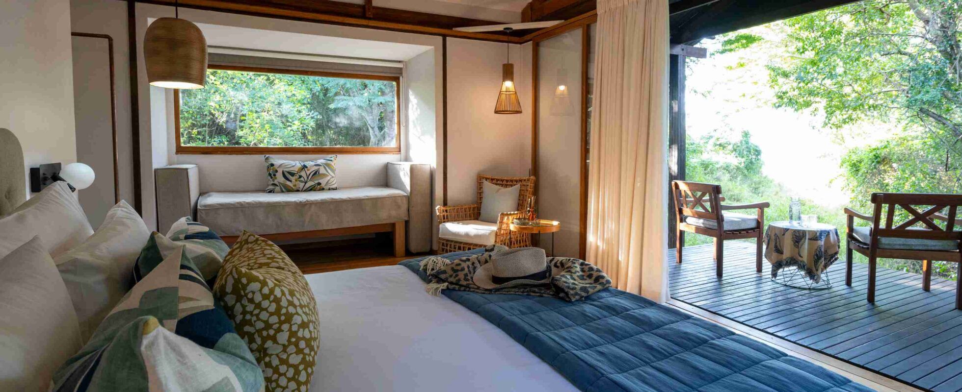 Makakatana Bay Lodge is de enige private accommodatie in iSimangaliso Wetland Park. iSimangaliso betekent ‘mirakel en verwondering’ in het isiZulu, en dit moerasgebied langs de Indische Oceaan staat op de Werelderfgoedlijst van UNESCO vanwege zijn ongeëvenaarde biodiversiteit en hoeveelheid wilde dieren. Aan de oevers van Lake St. Lucia biedt deze luxe lodge (die volledig op zonne-energie draait) 8 elegante kamers, waarvan sommige geschikt zijn voor gezinnen met kinderen. Alle modern comfort wordt hier gecombineerd met de natuurlijke charme van het moerasgebied. De kamers zijn ensuite met binnen- en buitendouches en een bad, en beschikken over privéterrassen met prachtig uitzicht, een goed gevulde minibar en extra dagbedden. Relax bij het zwembad en geniet van een cocktail in de bar. En of je nu kiest om binnen in het restaurant te dineren, buiten op het uitkijkterras of rond het vuur in de traditionele boma, Makakatana zorgt altijd voor een onvergetelijke ervaring!