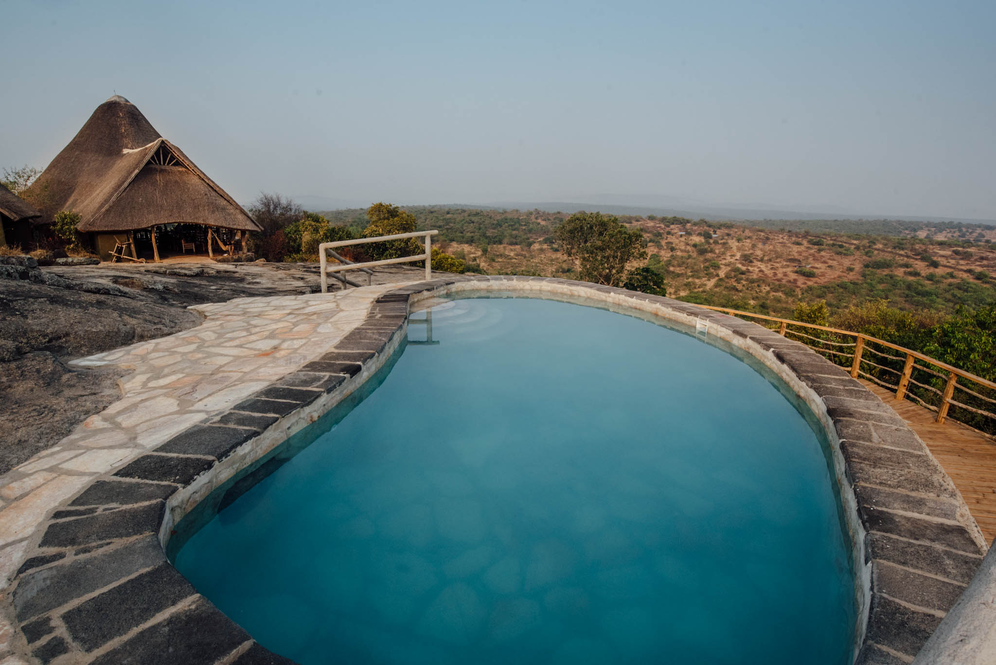 Rwakobo Rock Lodge is een charmante eco-lodge op de top van een heuvel net buiten het Lake Mburo National Park. Je vindt er comfortabele kamers in ronde huisjes die over de hele heuvel verspreid liggen, allen met een prachtig uitzicht over het park. De cottages passen perfect in het ongerepte, rustgevende landschap, en zijn uitgerust met basisvoorzieningen zoals verlichting op zonne-enegerie, spoeltoiletten en warmwaterdouches (ook op zonne-energie). Het zwembad ligt in de rotsen verzonken en de bar zorgt voor de nodige verfrissende drankjes na je avontuurlijke safaridag. Ontbijt en diner worden geserveerd in het restaurant, en een leuk detail is dat je tijdens het eten nog meer wilde dieren kunt spotten bij de waterpoel een beetje verderop; zebra’s, wrattenzwijnen, impala’s en bosbokken komen er geregeld samen drinken.