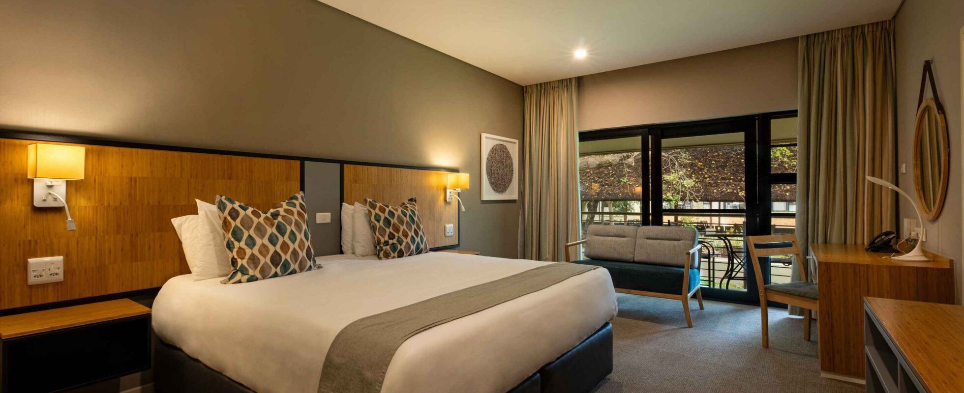 Skukuza Safari Lodge ligt in het beroemde Skukuza Rest Camp in het Kruger National Park en biedt de ultieme bush-ervaring met 128 kamers, waaronder familiekamers, waar je kunt genieten van de ongerepte schoonheid van de Afrikaanse wildernis – maar met alle luxe en comfort. De kamers zijn ensuite met inloopdouche en uitgerust met kingsize- of twinbedden, airconditioning, een minibar, een kluisje, satelliet TV, Wi-Fi en een privéterras. Na je game drives kun je relaxen in de bar en verhalen uitwisselen met medereizigers, en je smaakpapillen verwennen in het voortreffelijke restaurant. En als je even wilt afkoelen, neem dan een duik in het zwembad of geniet van een ontspannende massage in de spa. En waarom zou je geen balletje slaan op de Skukuza Golf Club, de wildste golfbaan ter wereld, te midden van nijlpaarden, impala’s en wrattenzwijnen!