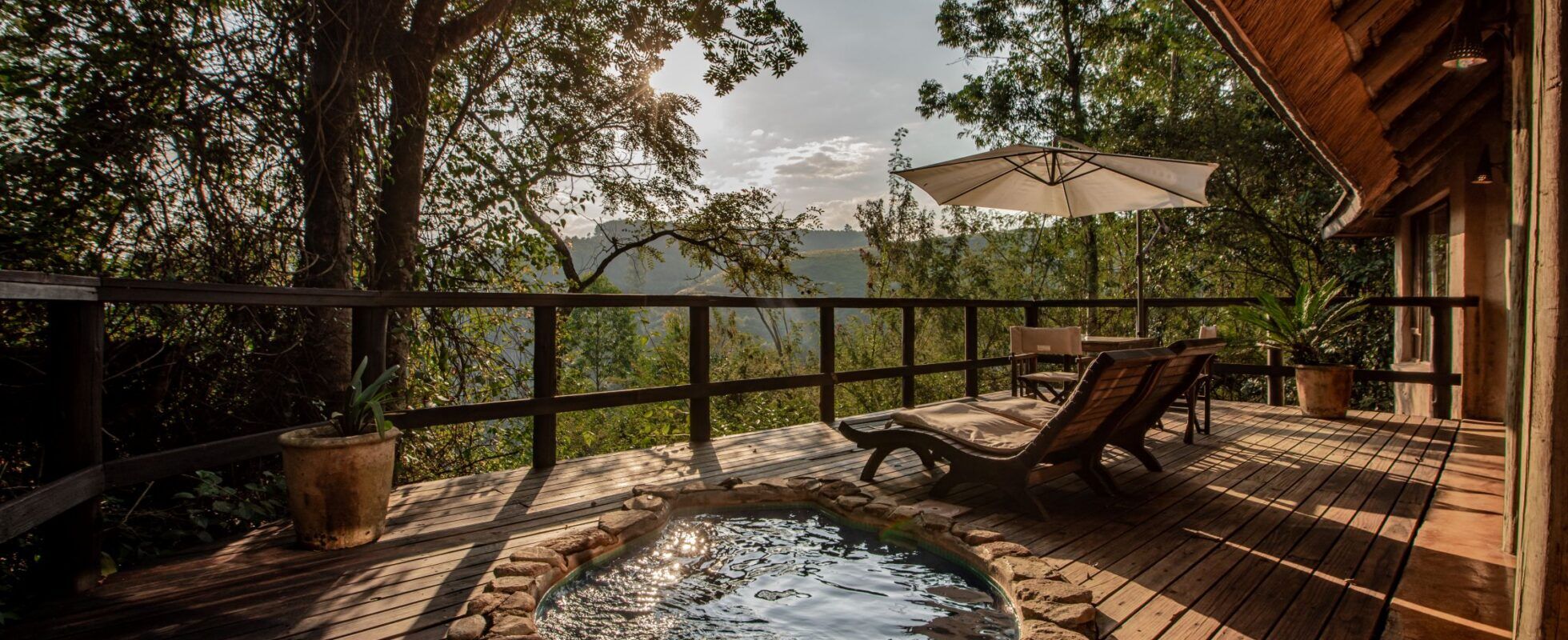 Tanamera Lodge ligt in Hazyview, Mpumalanga, op een paar minuten rijden van de Phabeni-poort van Kruger National Park. Met slechts zeven rieten chalets houdt deze boutique lodge de sfeer intiem. Elk chalet is uitgerust met een kingsize bed met klamboe, een open haard en een ensuite badkamer met een reusachtig bad (groot genoeg voor twee!) en een watervaldouche. Eten is hier een belevenis, met een volledig Engels ontbijt en dagelijkse extra’s zoals flapjacks of muffins. Het diner is een steeds wisselend driegangenmenu, geïnspireerd door de plaatselijke culinaire tradities. Je kunt dineren op je privédek of in de lodge… of onder de sterren, natuurlijk!