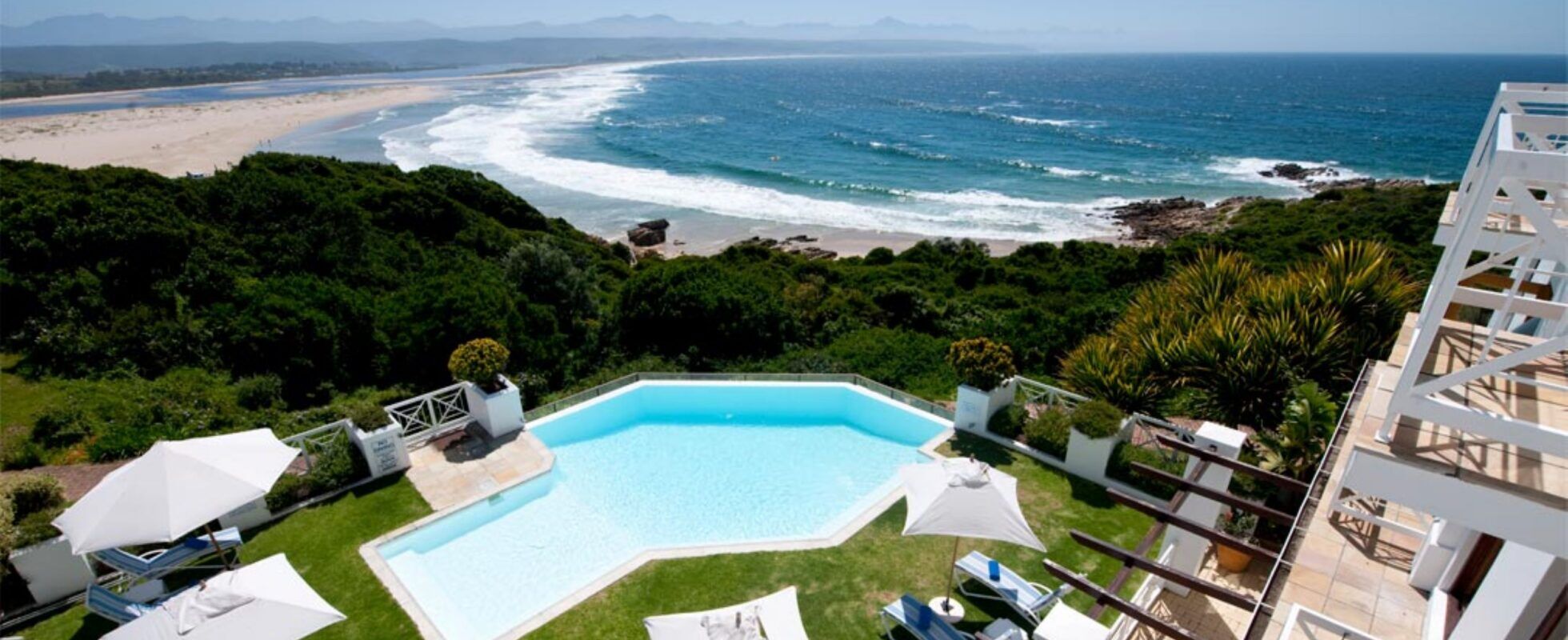 The Plettenberg, gelegen op de rotsachtige klippen in Plettenberg Bay, is je ultieme beachfront luxehotel. Het biedt 35 prachtig ingerichte kamers en twee familievilla’s met adembenemend uitzicht. Elke kamer beschikt over een eigen zithoek, een extra groot kingsize bed, airconditioning, satelliet TV en een ensuite badkamer met verwarmde handdoekrekken, badjassen, slippers en fijne toiletartikelen. Andere leuke extra’s zijn een Nespresso-apparaat, een goed gevulde minibar en een gratis flesje wijn bij aankomst. Twee verfrissende zwembaden, een heerlijke spa en een fitnessruimte houden je bezig tussen de tours en attracties door, en de Sandbar serveert cocktails aan het zwembad en drankjes voor en na het diner. Tot slot is Amelia’s restaurant de droom van elke fijnproever, met zijn perfecte mix van lokale smaken, verse zeevruchten en culinaire creativiteit.