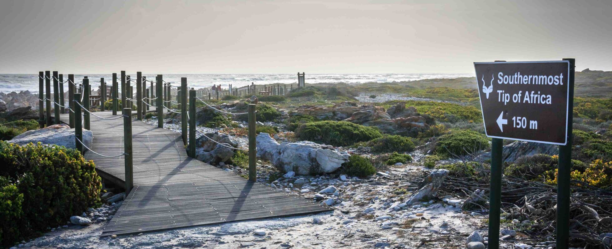 Sta op het uiterste puntje van Afrika, waar de Indische Oceaan en de Atlantische Oceaan letterlijk samenkomen. De Cape Agulhas Lighthouse, de op één na oudste nog in gebruik zijnde vuurtoren van Zuid-Afrika, houdt de wacht over deze dramatische kustlijn en biedt prachtige vergezichten en een kijkje in de maritieme geschiedenis. Een schilderachtige houten promenade verbindt de vuurtoren met het Map of Africa monument en de gedenksteen die het zuidelijkste puntje van het continent markeert. Volg het pad nog een stukje verder en ontdek het scheepswrak van de Meisho Maru, waarvan de verroeste resten een indrukwekkende herinnering zijn aan de woeste zeeën van de Kaap (en een hotspot voor fotografen). Hier sta je echt op de uiterste rand van Afrika!