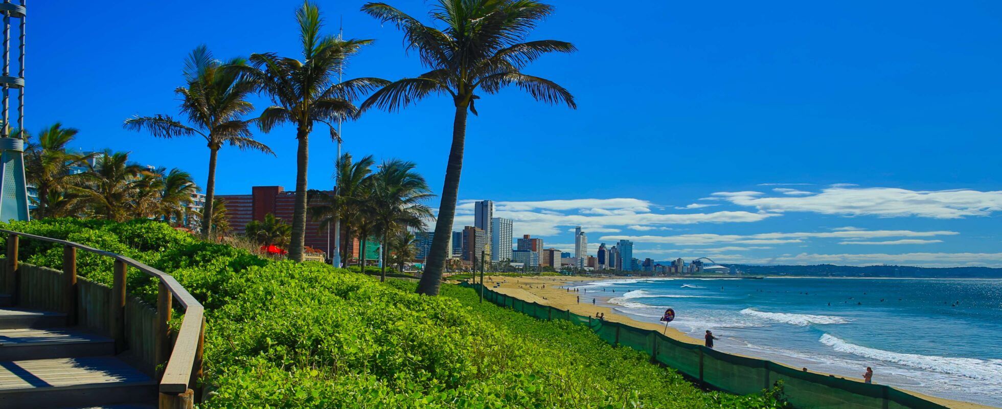 Durban, pal aan de Indische Oceaan, is zowel een bruisende havenstad als een relaxte badplaats met een warm subtropisch klimaat. Zelfs als de luchthaven je eindbestemming is, is Durban zeker je bezoek waard. Ga naar de beroemde Golden Mile voor zes kilometer strandgeluk, vol surfers, restaurants en strandbars, en neem een riksja voor de couleur locale. Breng een bezoek aan uShaka Marine World, een van de grootste aquaria ter wereld, en de bruisende Victoria Street Market vol geurige kruiden en streetfood. Met de grootste Indiase bevolking buiten India is Durban de beste plek een echte bunny chow en pittige Durban-curry te proeven. Sportliefhebber? Bezoek het iconische Moses Mabhida Stadium en neem de SkyCar de top (of wandel naar boven) voor een prachtig uitzicht over de stad.