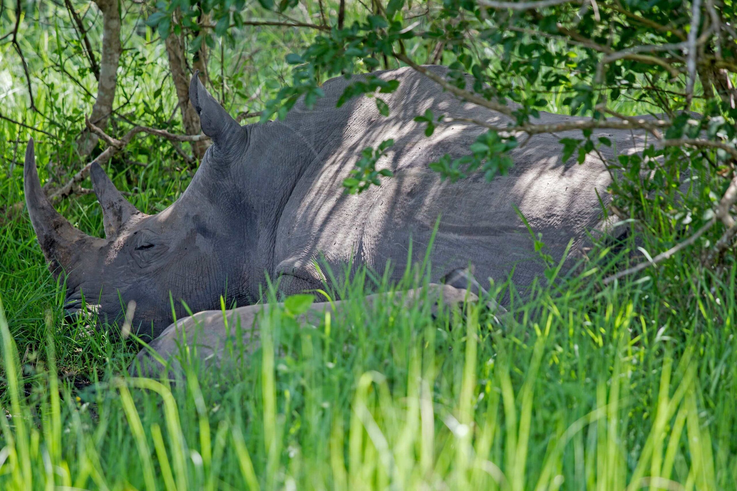 Er zijn twee dingen erg belangrijk om te weten over neushoorns, die bovendien ook nog eens handig zijn als je wilt pronken met je kennis over deze bijzondere beesten. Ten eerste zijn de neushoorns in dit park zuidelijke witte neushoorns. Van de noordelijke witte neushoorns, die vroeger in Oeganda rondzwierven, wordt aangenomen dat ze in het wild zijn uitgestorven en in het algemeen ernstig bedreigd zijn.